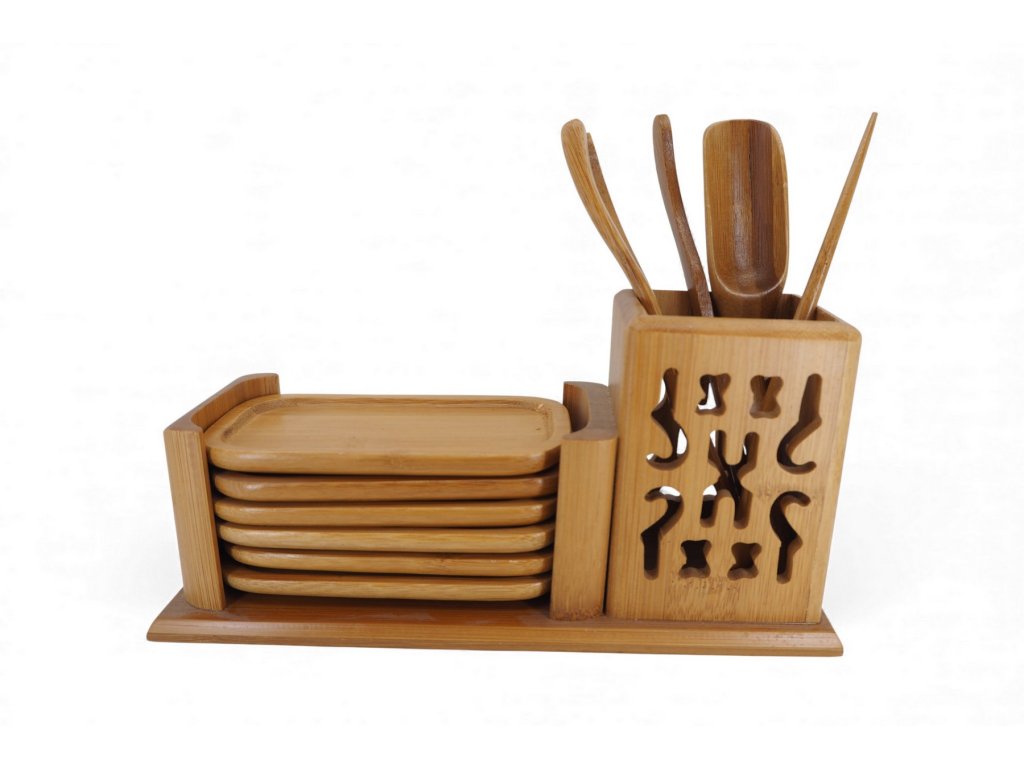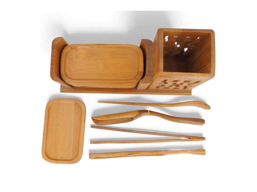 Bambusový set pomůcek na přípravu čaje. Rozměry 21x12x8 cm. Nikdy nepoužité, již pouze není v originálním balení.