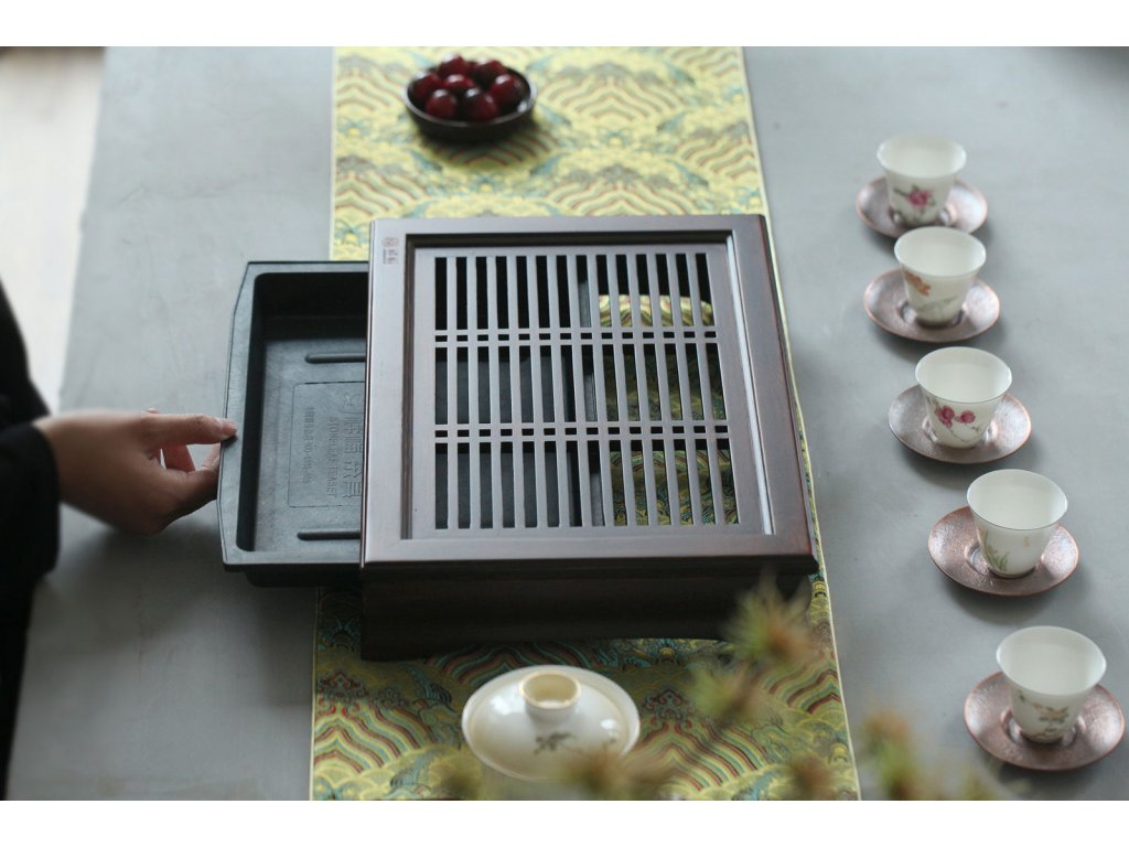 Středně velké čajové moře tmavé barvy. Při správném čajovém obřadu Gong-Fu má téci okolo voda proudem pro navození slavnostní atmosféry. To vám beztrestně projde pouze na čajovém moři, díky jehož důmyslné konstrukci nepolijete stůl ani své hosty. Po skončení čajování stačí pouze vylít vodu z praktického plastového šuplíku.
