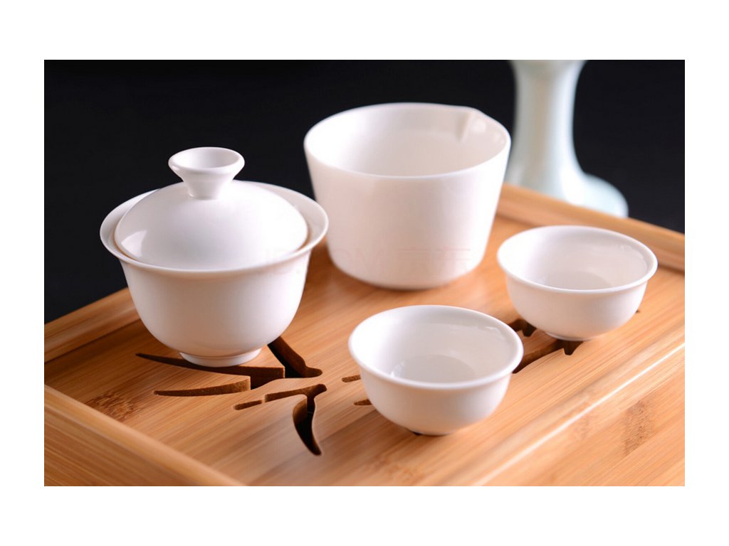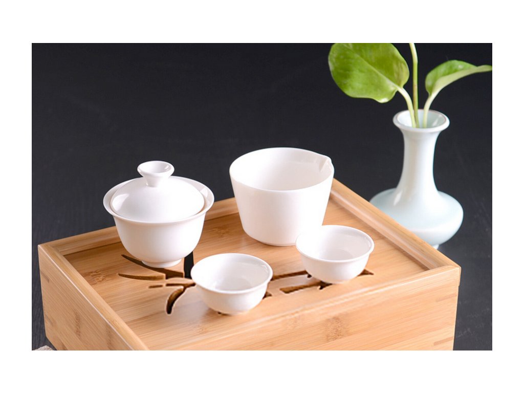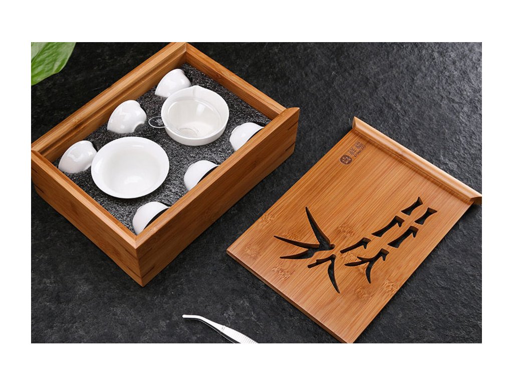 Praktická cestovní sada skládající se z čajového moře, gaiwanu, slévátka, šesti mističek, kovových kleštiček a sítka. Objem gaiwanu (zhongu) je přibližně 120 ml a objem jednotlivých mističek je 25 ml. To vše zabaleno v zelené tašce na zip.