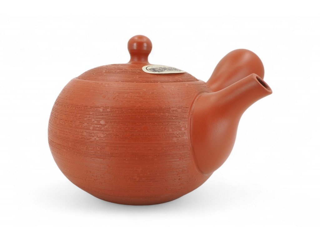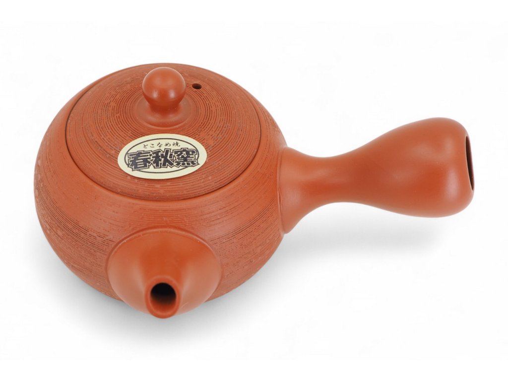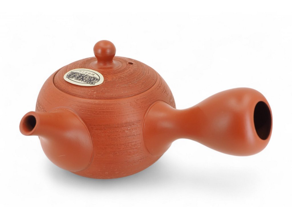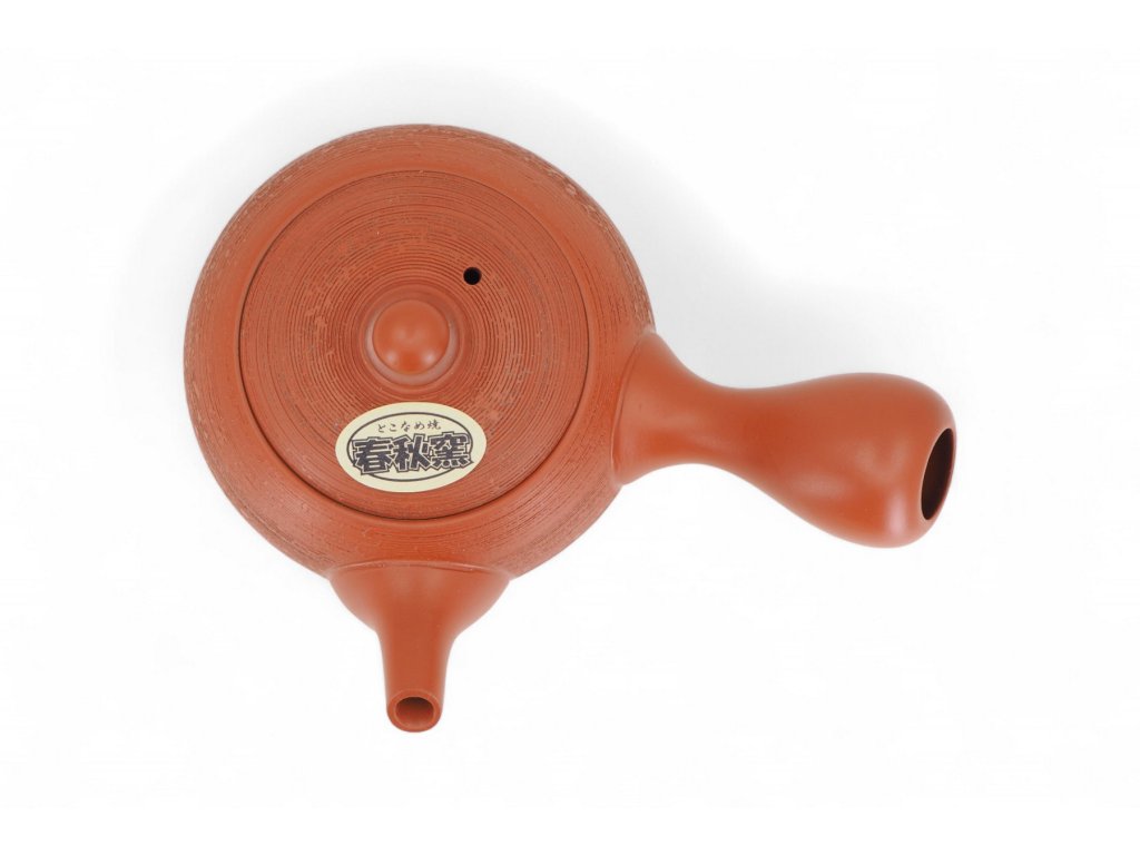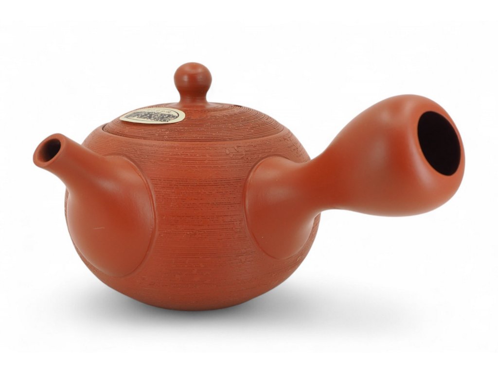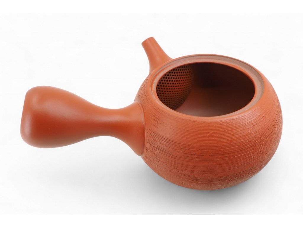 Keramická japonská konvička s bočním úchopem, hnědá s hrubším povrchem. Konvička pochází z městečka Tokoname v Japonsku. Přímý dovoz. Pouze dva kusy skladem. Uvnitř s jemným keramickým sítkem. Objem konvičky je 200 ml.