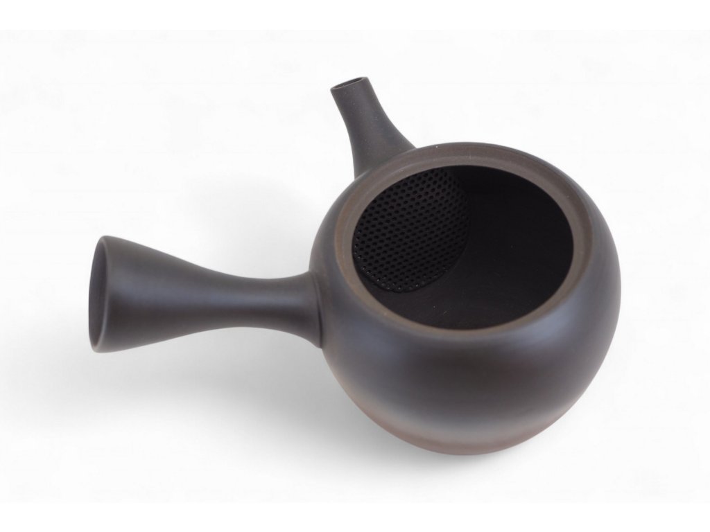 Keramická japonská konvička s bočním úchopem, dvoubarevná s hrubším povrchem. Konvička pochází z městečka Tokoname v Japonsku. Přímý dovoz. Pouze jeden kus skladem. Uvnitř s jemným keramickým sítkem. Objem konvičky je 140 ml.