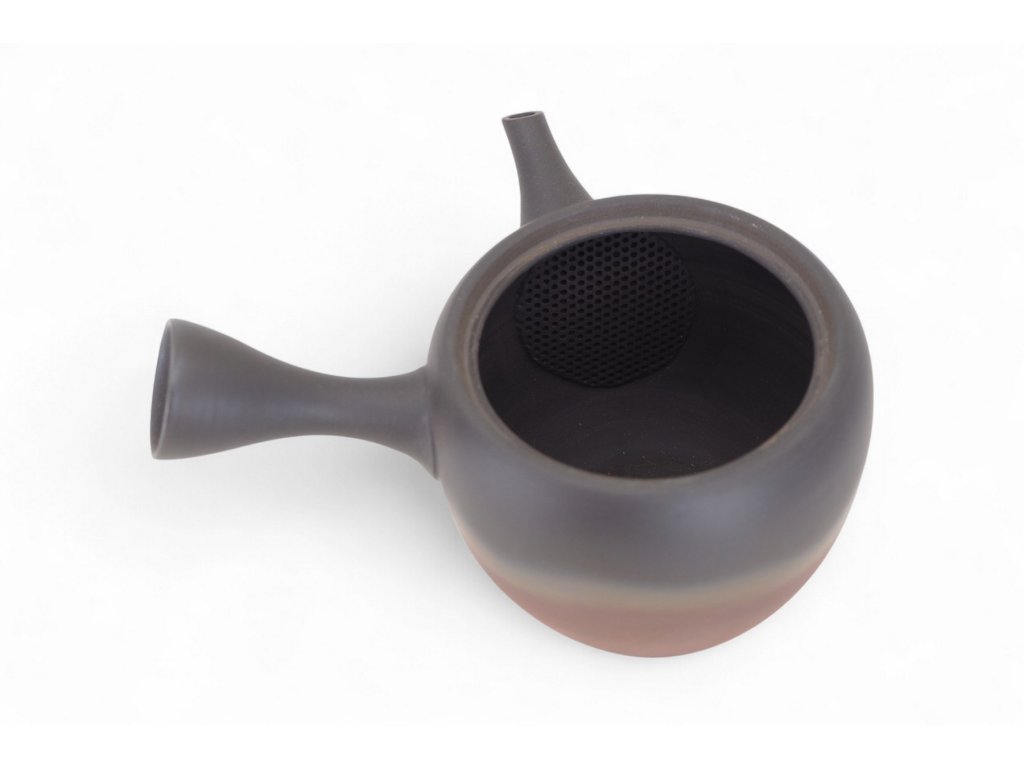 Keramická japonská konvička s bočním úchopem, dvoubarevná s hrubším povrchem. Konvička pochází z městečka Tokoname v Japonsku. Přímý dovoz. Pouze jeden kus skladem. Uvnitř s jemným keramickým sítkem. Objem konvičky je 200 ml.