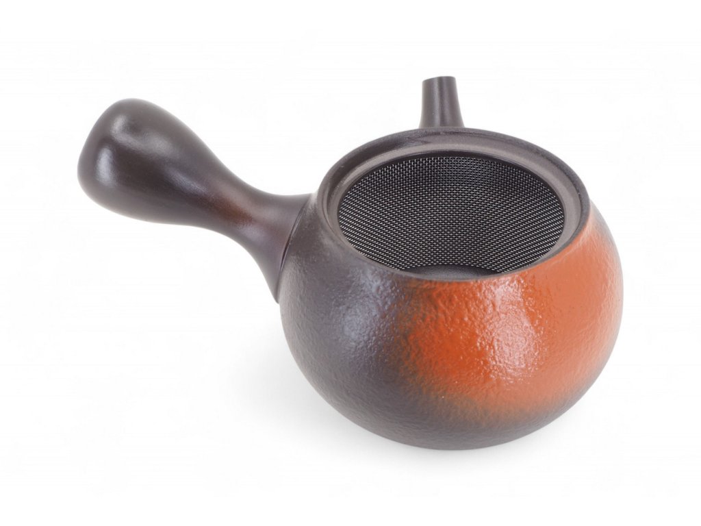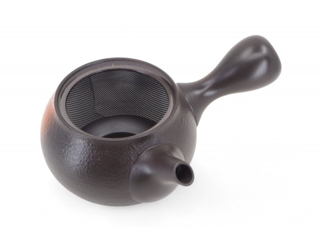 Keramická japonská konvička s bočním úchopem. Konvička pochází z městečka Tokoname v Japonsku. Přímý dovoz. Pouze dva kusy skladem. Uvnitř opatřena nerezovým sítkem po celém obvodu konvičky, vhodná k popíjení fukamushi čaje. Objem konvičky je 170 ml.