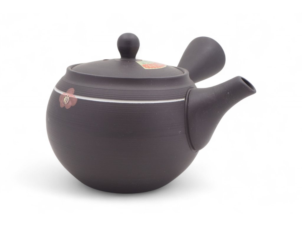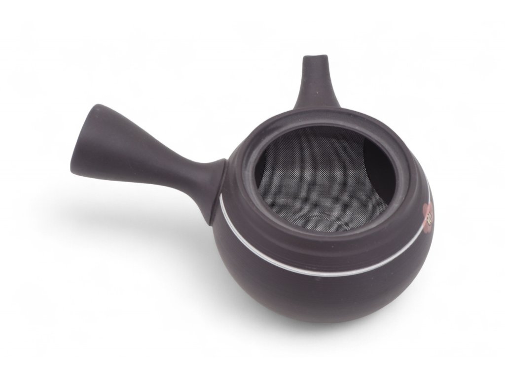 Keramická japonská konvička s bočním úchopem ozdobená květem sakury. Konvička pochází z městečka Tokoname v Japonsku. Přímý dovoz. Pouze dva kusy skladem. Uvnitř najdete jemné nerezové sítko kolem hubičky a na dně konvičky. Objem konvičky je 240 ml.